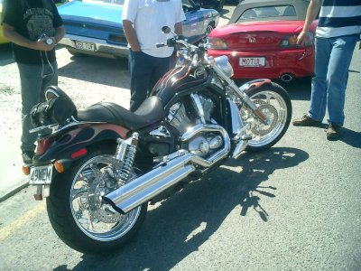 Sarah next joined us in Waipukurau, where we went hunting for old-fashioned milkshakes and some local souvenirs. We were successful on all counts, and also met a bloke with a rather special Harley. He rode up to the Targa group to have a look at our cars, to which we insisted he show us his bike since it was a new custom-built chrome and leather extravaganza, certainly worth more than many of the cars on the Tour. The next stage was SS38, a very quick sprint along the Kaokaoroa Range, finishing just out of Havelock North. This was the fastest run of our week, with lots of fast sweeping corners following a river down the valley. Our final special stage of the day, and indeed of the event, was a fast hill-climb up into the Kaweka Range, stopping at a hospitality area halfway through SS39. The Targa Tour fleet parked up here and enjoyed a barbecue in the sun, then watched the real Targa rally cars screaming by. By this stage the final finishing order was pretty much determined, and drivers were mostly preserving their machines to ensure they made it safely to the finish. Nonetheless they were all a whole lot quicker than our Tour cars, and certainly very entertaining to watch.