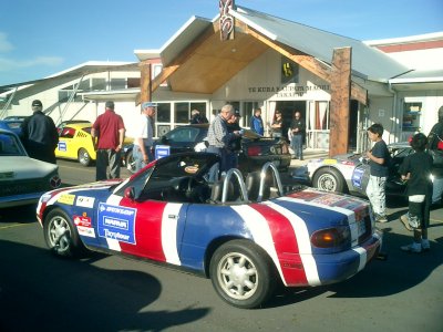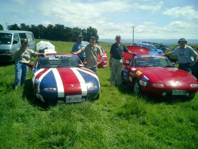 After breakfast Ken rejoined Mark in the MX5 and Sarah took over support van duties. Our next stage took us on a quick blast around Ashley Clinton to Waipukurau, through a mix of tight hill sections and some very fast, sweeping runs down the river valleys. We found time to wave to friends of Ken whose farm we passed on the way; they had been primed to look for a car featuring the Union flag but were nonetheless surprised by our 'Austin Powers' paintwork when we hurtled by.